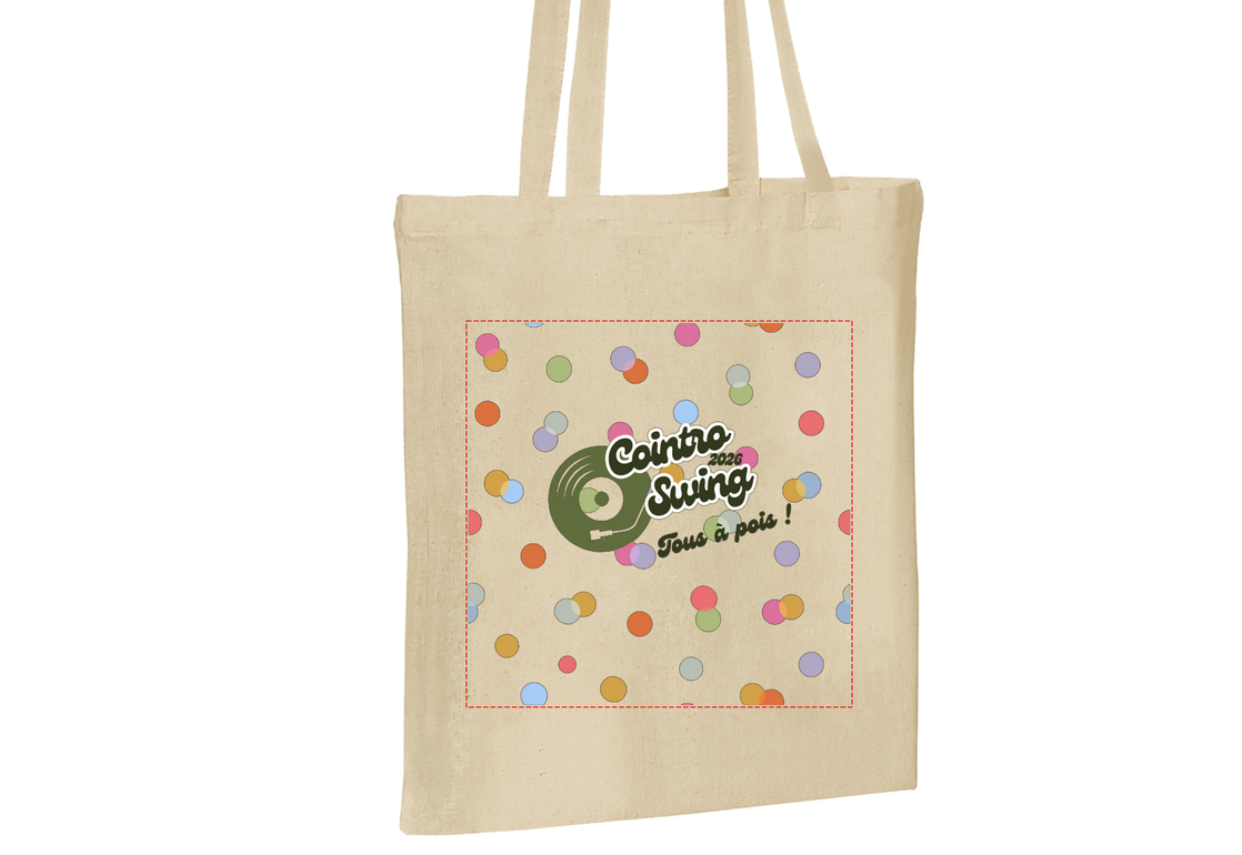 Floqué avec le logo du Cointro Swing 2026 (les pointillés rouges font partis du visuels de démonstration et ne seront pas sur le produit final).